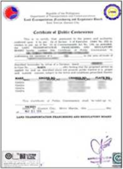 Certificate of Public Convenience / Franchise